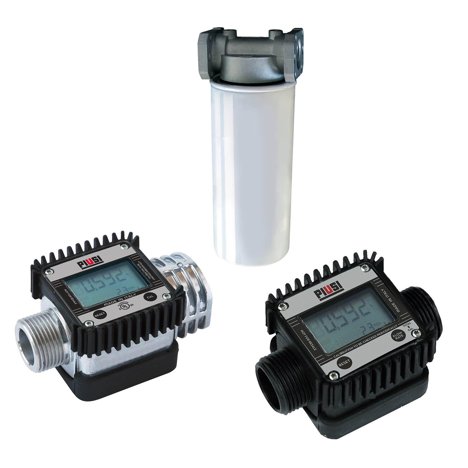 – Loss of pressure: <0.4 PSI @ 30 GPM - Flow-rate 2-32 gpm / 300 PSI Max operating AM-METER FOR GASOLINE Metering kit includes: - N.1 UL-approved and Explosion-proof turbine digital flow meter with display with 1” connection INLET/OUTLET - N.2 x AAA battery 1.5V - User manual (it can be re-calibrated) Performances: - electronic board with LCD shows a partial of 5 digits from 0.1 to 99999, for a total of 6 digits 1 to 999999 Total. - flow meter guarantees a metering accuracy of +/- 1% - it can be calibrated in US gal / Litres / Imp. Gal - it guarantees a metering accuracy of +/- 1% and a repeatability of 0.2% - reinforced aluminum body with polypropylene turbine - resettable total available - flow rate 2-32 gpm and flow-rate indication - loss of pressure: <0.4 PSI @ 30 GPM